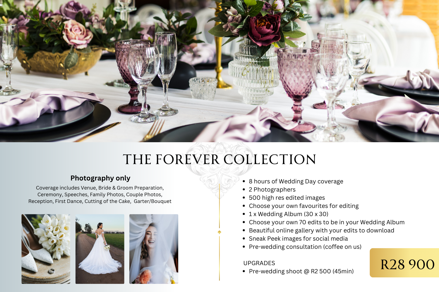 (1) for every couple to have an amazing photography experience on the day, as my team & I will be working with you most of the time, helping you with poses, styling, etc. and